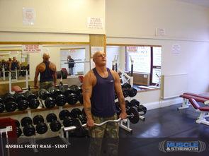 2. 杠铃前平举:使用杠铃进行前平举,可以锻炼到更多的肌肉群。